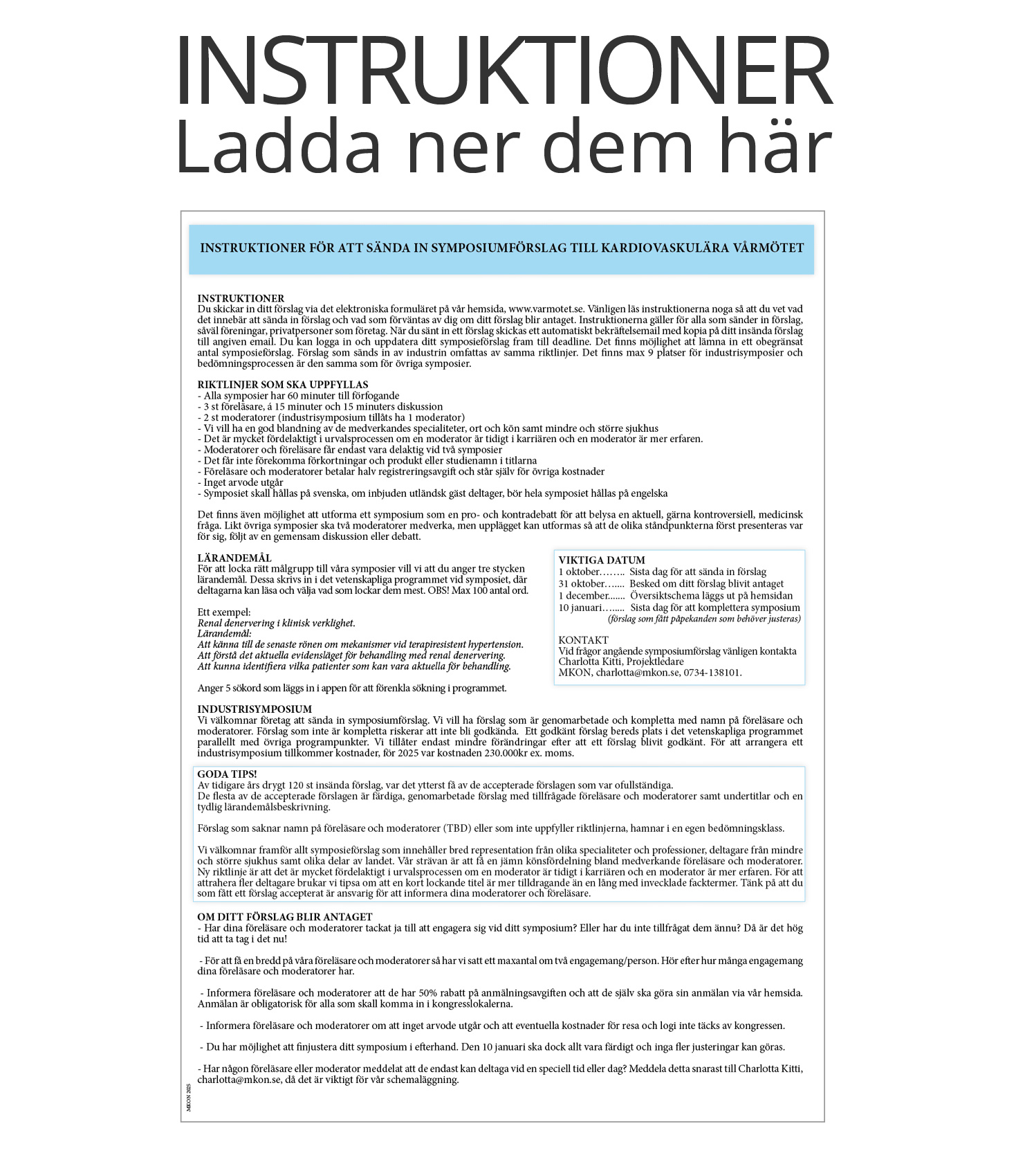 INSTRUKTIONER FÖR ATT SÄNDA IN SYMPOSIUMFÖRSLAG TILL VÅRMÖTET
